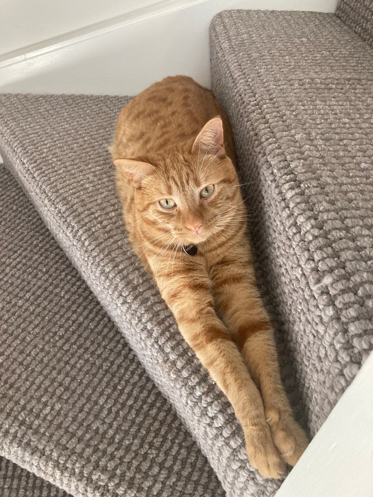 J: Well, I don’t think he would think of himself as a pet so much as an overlord, but yes! Simba is our ginger cat—who we rescued as a kitten. He turned two in October, and he enjoys sleeping, watching at the windows for birds, crunching cockroaches while we lie in bed listening to those poor little insect bodies being crushed, and stealing my spot if I get up during the night.