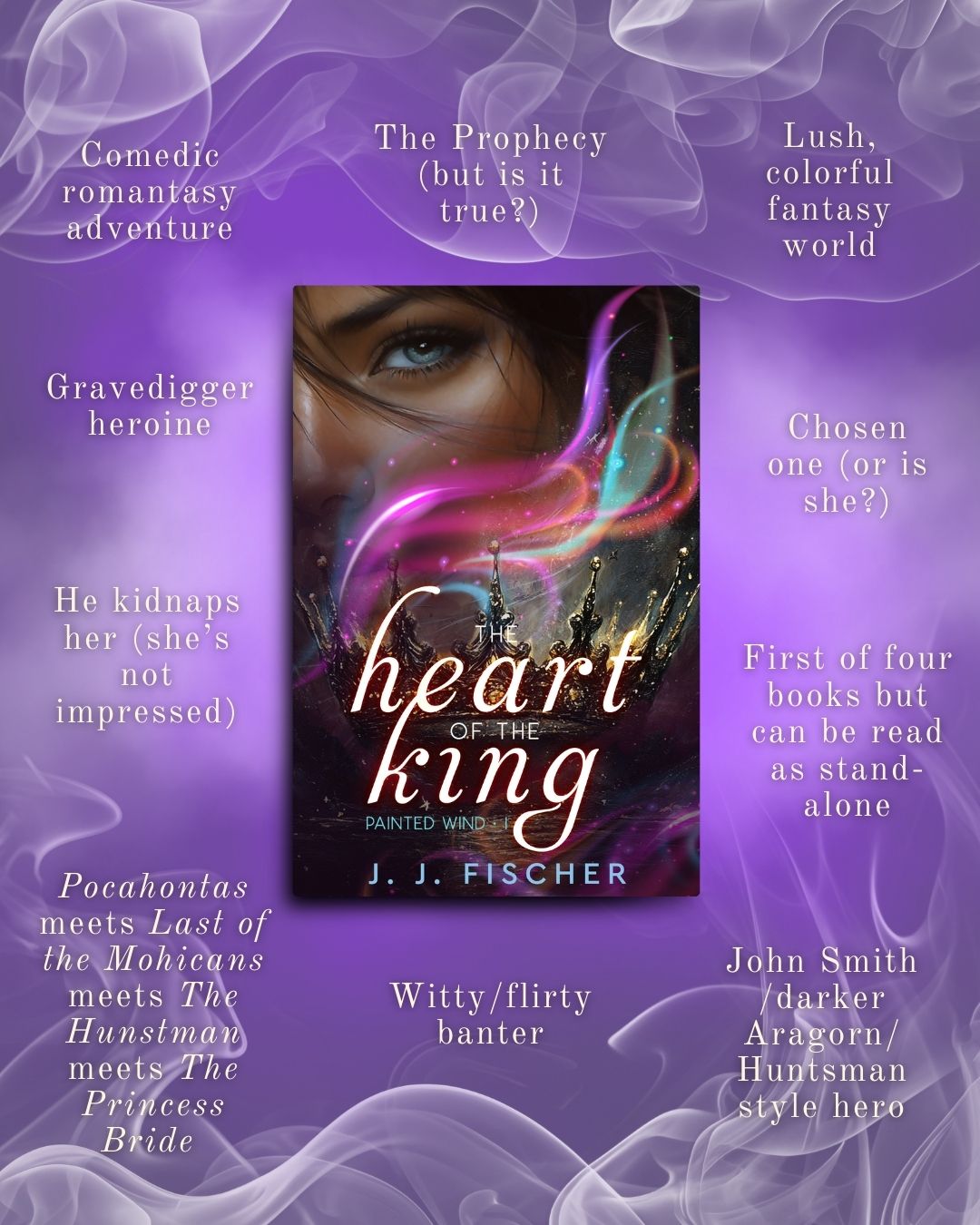 The Heart of the King is releasing on August 15, 2025! This is the first instalment in the four-book Painted Wind series, a comedic royal romantasy adventure with WhiteCrown Publishing, an imprint of WhiteFire publishing. The Heart of the King will be releasing in ebook, paperback, and audiobook formats. It will kick off a broader adventure arc but can also be enjoyed as a stand-alone book. Each instalment of the series will be released 6-7 months apart.